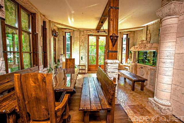 🟢 гостиная-столовая с большим аквариумом и столом на 16 гостей